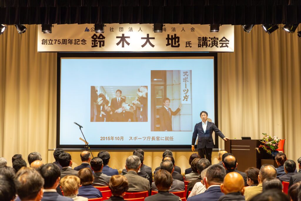 ソウルオリンピック金メダリストであり、初代スポーツ庁長官を務められた鈴木大地氏をお招きし、ご講演いただきました。